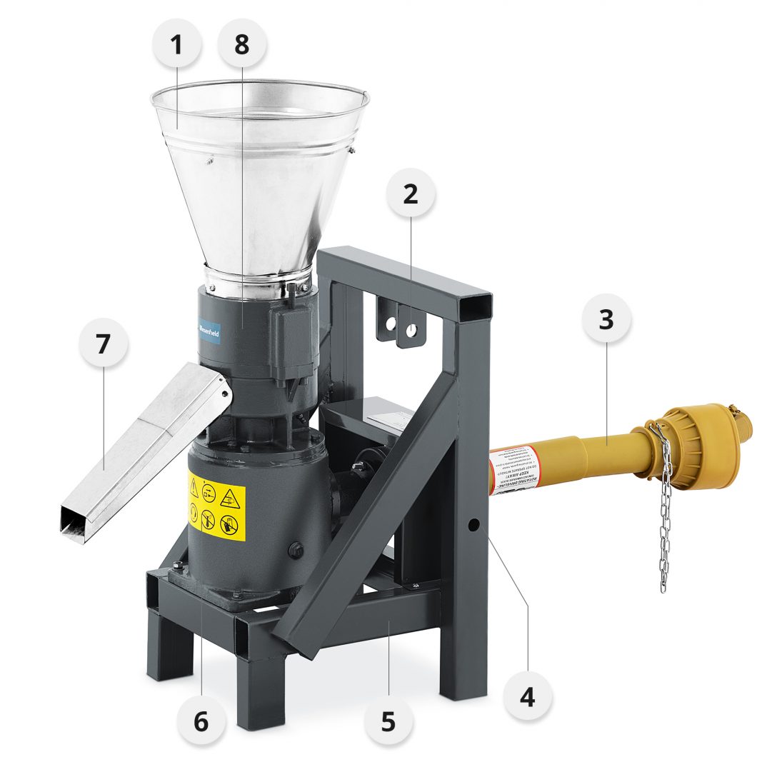 Ta en noggrann titt på alla delar som pelletsmaskinen består av: